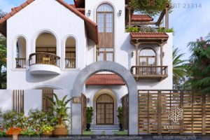 Mái Nhật và hệ cửa khuôn vòm là những yếu tố chính trong biệt thự hiện đại địa trung hải này. Với kiến trúc độc đáo, căn biệt thự tạo ra sự ấn tượng và thu hút ngay từ cái nhìn đầu tiên. Các chi tiết tinh tế và sự kết hợp hài hòa giữa các yếu tố kiến trúc tạo nên một không gian sống độc đáo và đẳng cấp.