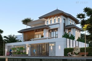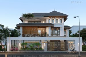 Với mẫu biệt thự mái Nhật hiện đại này, tinh tế được thể hiện trong từng góc nhìn. Từ ngoại thất, diện tích xây dựng rộng lớn và thiết kế mái Nhật đơn giản mang đến vẻ đẹp tinh tế và lịch sự. Bên trong, nội thất cao cấp và thiết kế thông minh tạo nên không gian sống tiện nghi và thoải mái. Sân vườn xanh mát và tiện ích như gara ô tô và hệ thống an ninh đảm bảo sự tiện nghi và an toàn. Tận hưởng tinh tế từ mẫu biệt thự này trên mỗi góc nhìn.