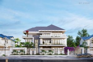 Kiến trúc biệt thự hiện đại 3 tầng mái nhật kết hợp kết hợp hiện đại và truyền thống* một cách tinh tế. Đường nét thanh thoát, mái cong và cửa sổ lớn thể hiện phong cách Nhật Bản. Các vật liệu và công nghệ hiện đại được sử dụng, tạo nên một không gian vừa văn hóa, vừa hiện đại.