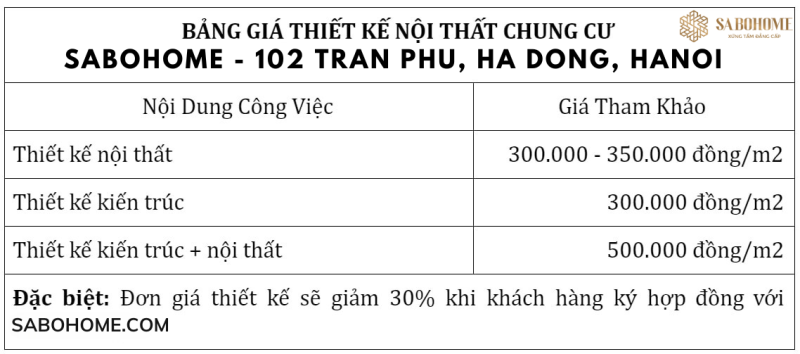 1. Báo giá thiết kế nội thất chung cư tại SABOHOME