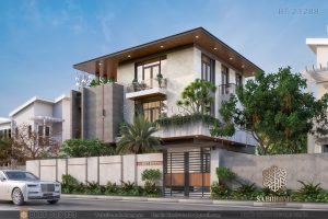 Biệt thự 3 tầng hiện đại mái Nhật tại Hải Phòng mang trong mình sự kết hợp tinh tế của kiến trúc hiện đại và truyền thống. Mái Nhật truyền thống là một trong những đặc trưng nổi bật của biệt thự này, tạo nên vẻ đẹp độc đáo và nổi bật. Tuy nhiên, không chỉ dừng lại ở mái Nhật, kiến trúc của biệt thự còn được thiết kế theo phong cách hiện đại, với những đường nét tinh tế và màu sắc hài hòa. Sự kết hợp này tạo nên một biệt thự độc đáo và thu hút.
