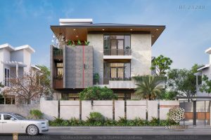 Biệt thự 3 tầng hiện đại mái Nhật tại Hải Phòng được thiết kế độc đáo và tiện nghi, tạo ra một không gian sống đẳng cấp và thoải mái cho gia đình. Với tổng diện tích xây dựng 195m2, biệt thự này có đủ không gian để phục vụ các hoạt động gia đình và cá nhân. Mỗi tầng được thiết kế độc lập và kết nối thông minh, mang đến sự riêng tư và thuận lợi cho cả gia đình. Các phòng ngủ rộng rãi và thoải mái, phòng khách sang trọng và phòng bếp hiện đại là những điểm nhấn của không gian sống.