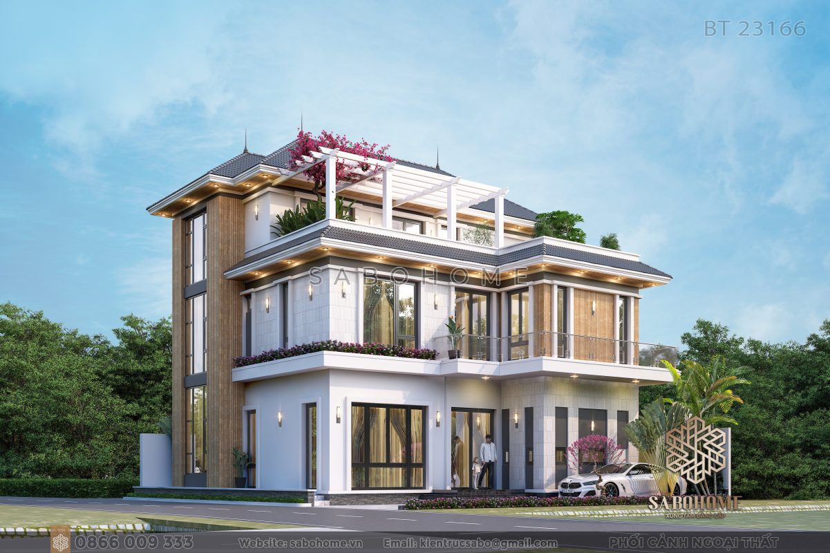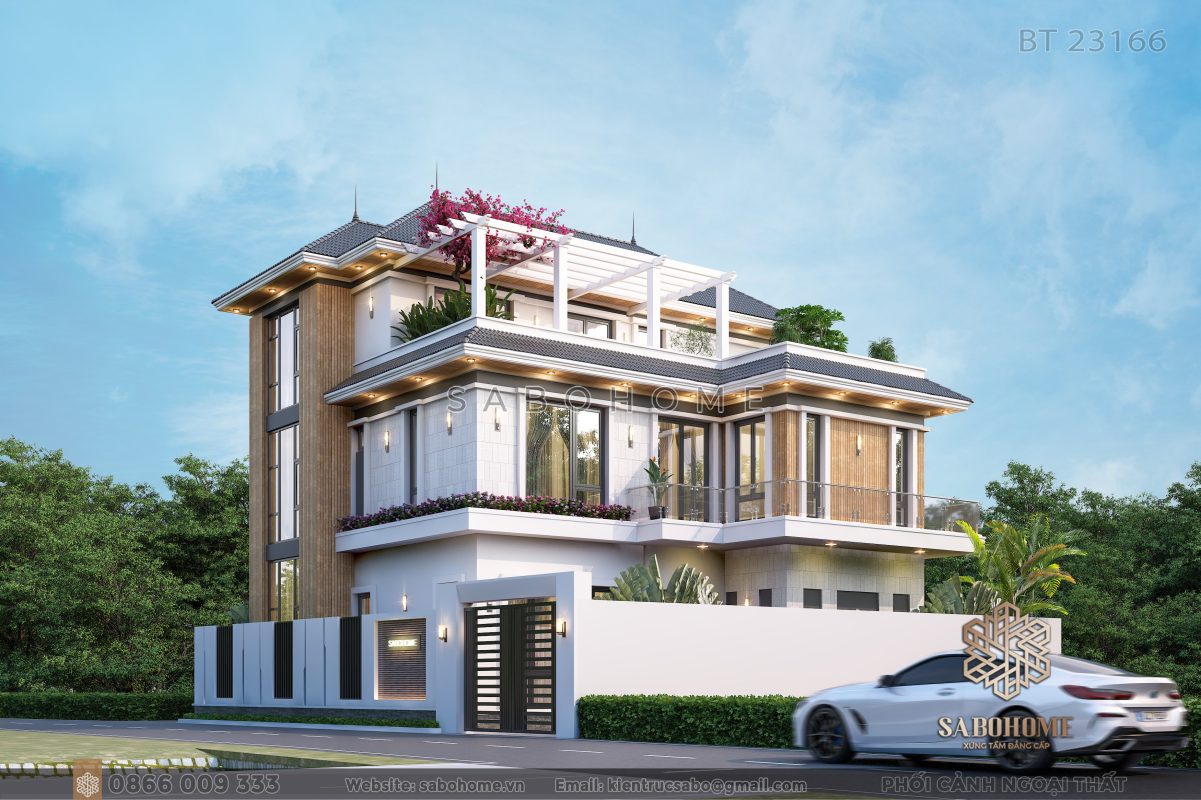 Mẫu biệt thự hiện đại, trang nhã là một tác phẩm kiến trúc đẳng cấp, kết hợp giữa phong cách hiện đại và sự trang nhã. Với thiết kế ngoại thất đẹp mắt, không gian sống nội thất tinh tế và tiện nghi, công năng tiện ích và cổng tự động, biệt thự này mang đến một không gian sống lý tưởng và đẳng cấp. Thương hiệu Sabohome đảm bảo chất lượng và uy tín, đem đến sự tin tưởng và hài lòng cho khách hàng. Nếu bạn đang tìm kiếm một không gian sống trang nhã, tiện nghi và đẳng cấp, mẫu biệt thự này là lựa chọn hoàn hảo để tạo dựng những kỷ niệm đáng nhớ và trải nghiệm cuộc sống đẳng cấp.