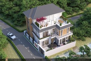 Một trong những điểm nổi bật của mẫu biệt thự hiện đại, trang nhã này là thiết kế ngoại thất tinh tế, trang nhã và sang trọng. Với sự chú trọng đến chi tiết, cấu trúc mái Nhật độc đáo và màu sắc tương phản, biệt thự này tạo nên một diện mạo ngoại thất đẹp mắt và độc đáo.