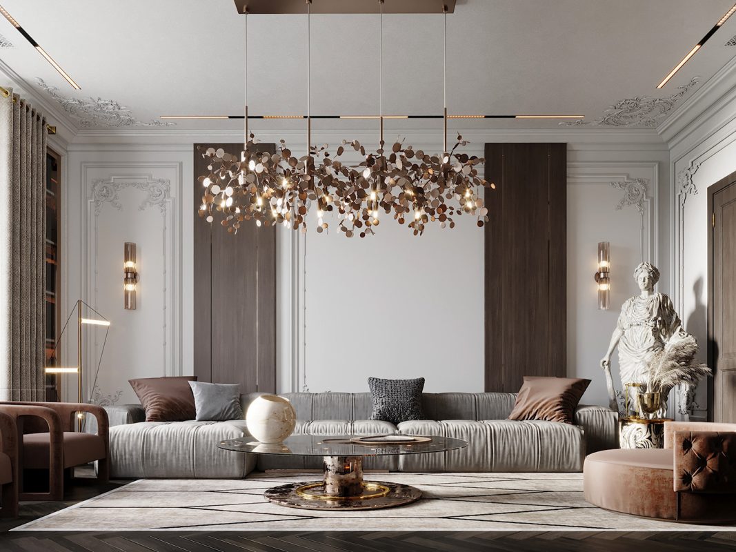 Phòng khách thiết kế theo phong cách luxury sang trọng và đẳng cấp