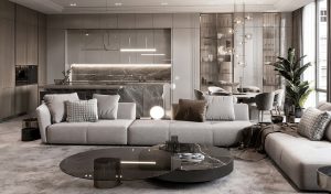 Phòng Khách và Bếp Hiện Đại Sang Trọng: Kết Nối Sự Tiện Nghi Và Phong Cách