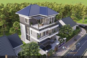 Mái Nhật xanh là một yếu tố nổi bật trong thiết kế biệt thự hiện đại này. Được lấy cảm hứng từ kiến trúc truyền thống Nhật Bản, mái Nhật xanh mang đến sự thanh thoát và tinh tế cho không gian sống. Với các đường nét uốn lượn và màu xanh dịu mắt, mái Nhật xanh tạo nên một điểm nhấn độc đáo và quyến rũ cho biệt thự.