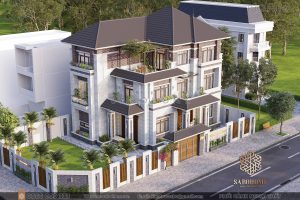 Biệt thự 3 tầng đáng mơ ước cung cấp không gian sống đẳng cấp và thoải mái. Với diện tích xây dựng rộng rãi, không gian sống được tối ưu hóa để tận dụng ánh sáng tự nhiên và không gian mở. Từ phòng khách sang trọng, phòng ăn rộng rãi cho đến những phòng ngủ riêng tư, mỗi không gian được thiết kế để đem lại sự thoải mái và tiện nghi cho cư dân.